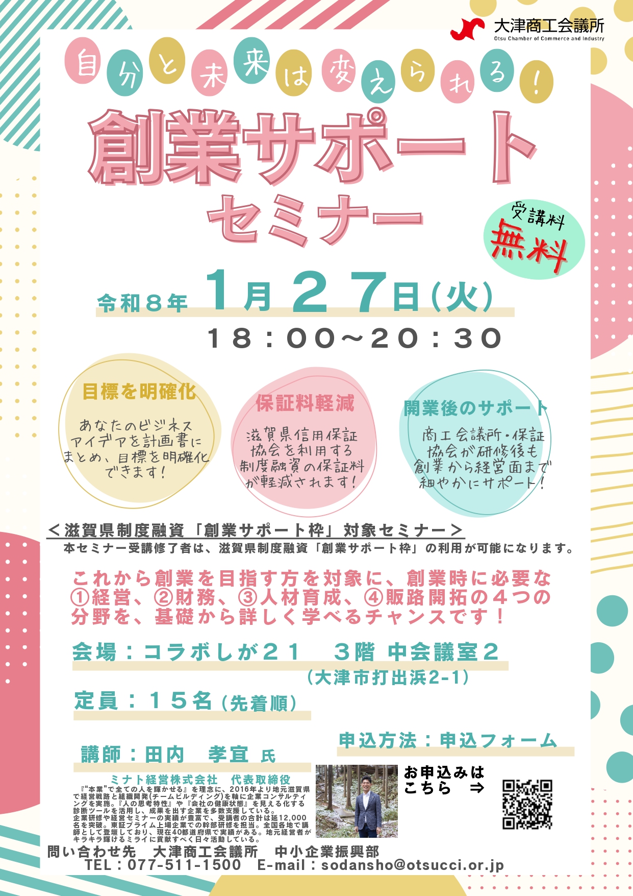 1/27 創業サポートセミナーを開催します!【大津商工会議所主催】